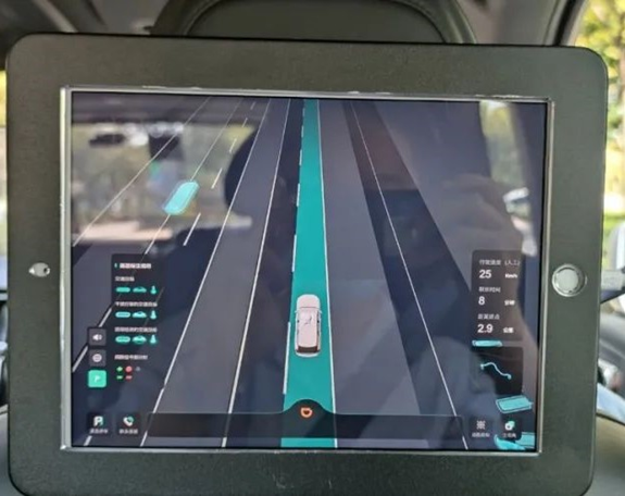 参观结束后,工作人员引导师生体验自动驾驶。测试主要内容是在规定的路线上往返一趟,通过手机发出订单(指定路线),自动驾驶车辆前排坐着安全员,主要负责在一些极端情况下及时接管车辆,确保乘客安全,并尽可能的保持交流沟通,方便乘客更快熟悉自动驾驶。在行驶过程中,乘客前方的平板上还会显示车辆行进过程中周边信息的模拟信号,包括:道路情况、周围车辆、路边行人、交通信号灯时长等。