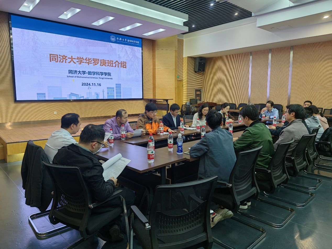 紧接着,研学团于华罗庚纪念馆一楼会议厅举行华罗庚数学科技英才班建设推进会暨青年教师参与数学拔尖人才和卓越工程科技人才培养新模式研讨会。会议由杨亦挺副书记主持。李忠华副院长首先做华罗庚班建设主题报告。忠华院长从首届华罗庚班生源来源情况及学生动态管理机制设计、“开设荣誉课程、加强科研训练、实现本研贯通、增强国际视野、注重创新项目”五位一体的培养方案、核心课程师资队伍建设等方面详细阐述了依托华班建设具有同济特色的一流拔尖创新人才的人才培养探索。