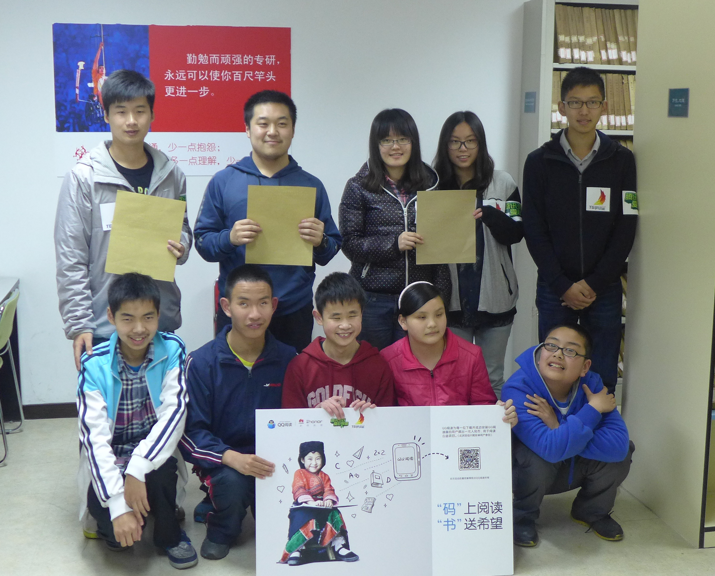 4月21日下午两点,伴着淅淅沥沥的小雨,同济数学系12级的6名同学一同行动了起来,在腾讯的赞助下,同济数学系的六名同学前往虹桥的上海盲童学校,为那里的孩子们捐赠书籍、与他们交流活动,奉献爱心。