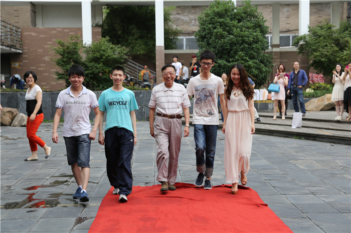 2014年6月22日,我校数学系2014届毕业生毕业日活动顺利举办。毕业日活动由“闪耀红毯秀”拉开了序幕。下午1点,2014届毕业生和老师们齐聚在大学生活动中心下沉式广场,举办了隆重的毕业红毯秀。同学们和自己朋友、老师共同走上了红毯,留存这一珍贵的瞬间。数学系毕业生的青春与活力,成为了同济园一道闪亮的风景线。红毯秀最后在一组动人心弦的歌曲声中结束。