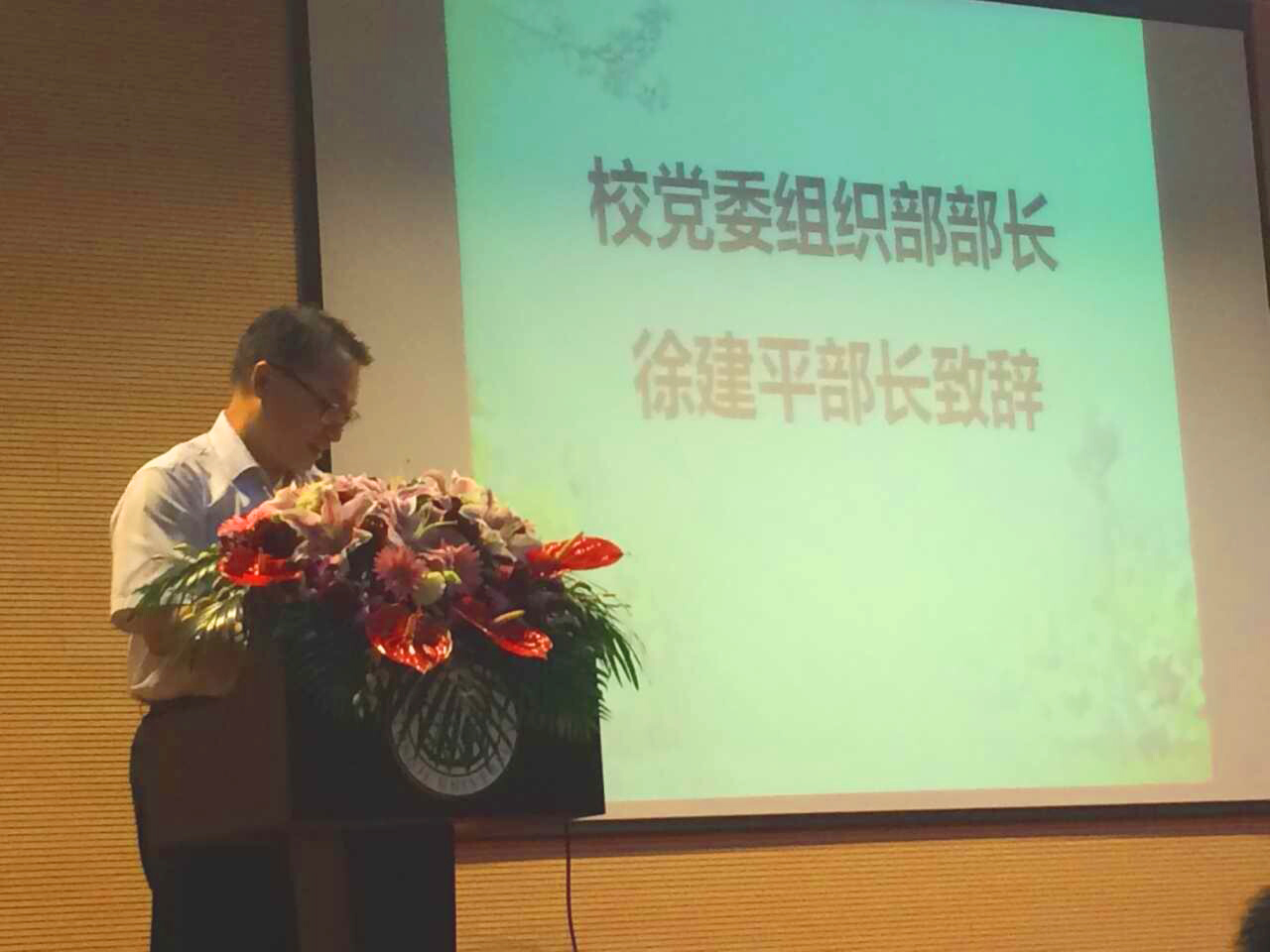 校党委组织部部长、数学系校友徐建平部长为毕业典礼致辞。徐部长充满深情得回忆了他在数学系学习和工作的经历,他寄语毕业生要坚持理想,坚持追求卓越。他希望同学们无论在人生的道路上会有怎样的风景,要始终关注和支持母校,母校也会为同学们的终身成长提供支持、提供帮助。