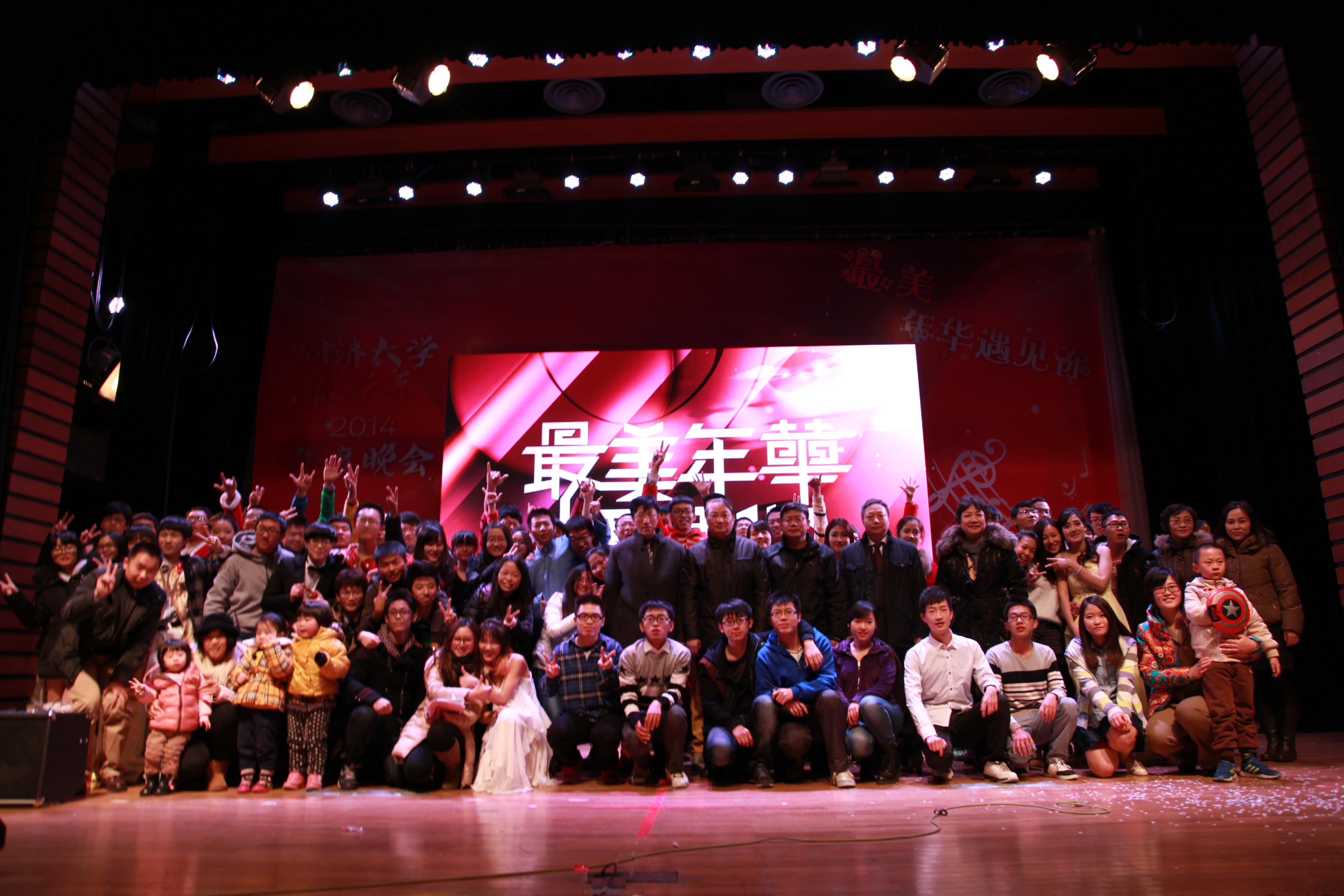在校党委副书记徐建平老师表达了一番发自肺腑的希冀和其作为一名同济数学校友的真挚情谊后,与其那句“祝大家新年好”一同,清新动人的全体歌舞表演《We’re all together》为“圆梦”篇章、为整场晚会画下最精彩、完美的句号!“最美年华遇见你”同济大学数学系2014年度晚会圆满落幕。