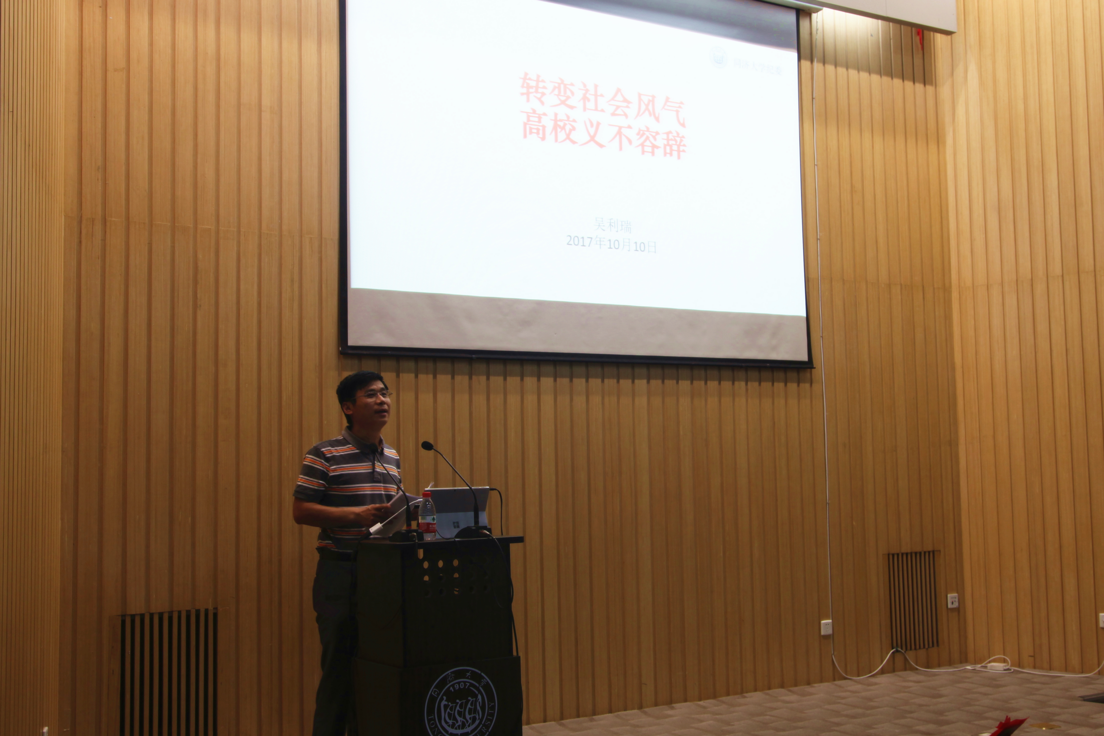 ——校纪委副书记吴利瑞为我院全体党员和入党积极分子作题为“转变社会风气,高校义不容辞”的专题报告