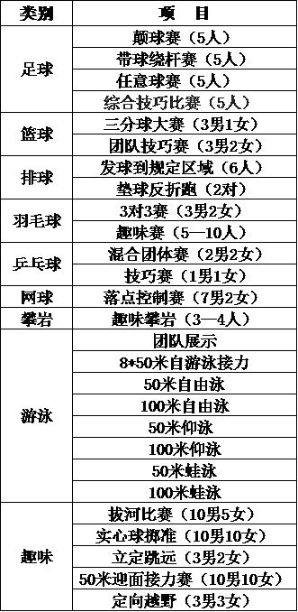报名方式:请请同学们选择自己感兴趣的项目于4月28日下午15:00点之前编辑短信“类别+项目+姓名+性别+学号+班级+联系方式”到各班级体委即可,请体委于4月28日晚10点前将名单汇总至中心。