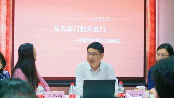 5月27日晚,“共话百年峥嵘,激扬青年之声“党史学习教育社区讲堂——西南十二楼驻楼导师工作站顺利召开。同济大学党委副书记吴广明教授走进学生社区,为同学们讲述中国共产党从上海诞生以后,红色基因百年传承的故事。本期驻楼导师活动由欧洲足球比分直播 党委副书记赵盈主持,共同出席本次活动的还有党委学研工部副部长王小莉、欧洲足球比分直播 党委书记李静茹、欧洲足球比分直播 副院长李忠华、学研工部凌昱晨、欧洲足球比分直播 团委书记彭婧,四十余名同学参与本次活动。